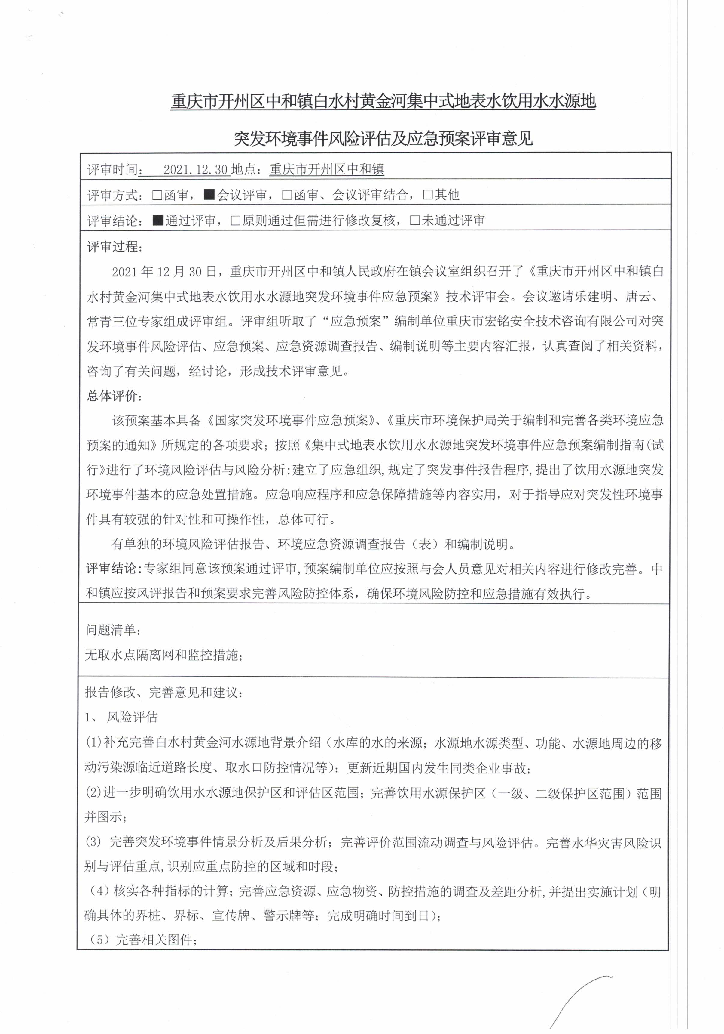 《重慶市開州區(qū)白水村黃金河集中式地表水飲用水水源地突發(fā)環(huán)境事件應急預案》;/UploadFile/file/20220224/20220224100091859185.docx