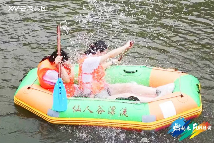 隨著工作人員將漂流筏推向出發(fā)高地,河中頓時水花四起,